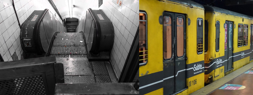 5. Mai 2016: Buenos Aires - die gute Luft aus dem Metroschacht (L). Subte: Das bevorzugte Verkehrsmittel während der Rushhour, d.h. zwischen 0:00 bis 23:59 (R).