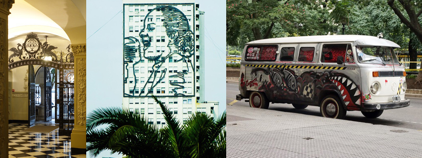 8. Mai 2016: Hausbesuch bei Evita alias Eva Duarte de Perón (L). Don't cry for us Argentina (M). Alter VW-Bus (R).