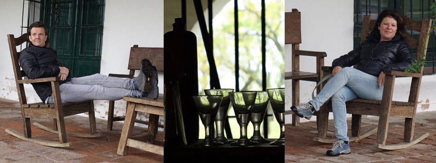 11. Mai 2016: Vida en el campo: Für die rasante Fahrt über die Schotterpiste (L). El Arte de los Plateros: Beim Silberschmid entdecken wir das Handwerk, das mit der Gauchokultur eng verbunden ist. Handprägung einer Messerscheide gemäss Skizze (R).