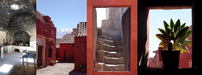 23. Mai 2016: Frauenkloster Catalina in Arequipa. Die Stadt in der Stadt. Das 20’000 Quadratmeter-Kloster ist eines der weltweit grössten. Die Chance, oft auch Verpflichtung, in dieses Frauenkloster aufgenommen zu werden, hatten nur zweitgeborene Töchter von sehr reichen, spanischen Familien, sofern sie einen perfekten Leumund aufwiesen. An der Kochstelle kochte nicht die Nonne selbst, sondern ihre Bedienstete. Im Gegensatz zur Topfpflanze rechts, existiert das Kloster seit 1579.