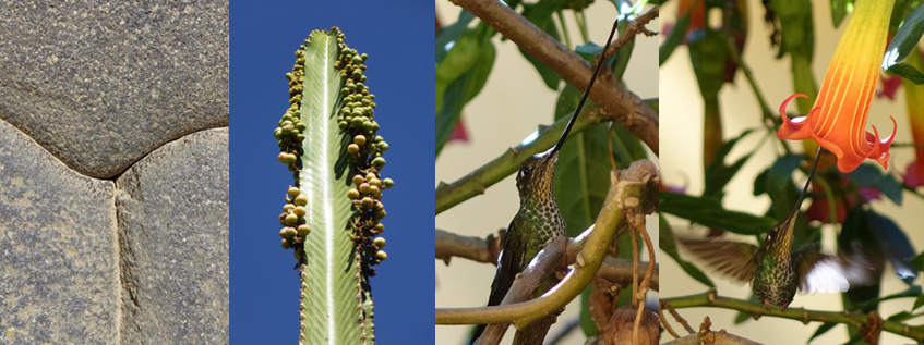 1. Juni 2016: Die Steinmetze der Inka waren in der Lage, grosse Steinblöcke so exakt zu bearbeiten und mörtellos zusammenzufügen, dass kein Blatt Papier mehr dazwischen passt (L). Kolibri beim Frühstück (R).