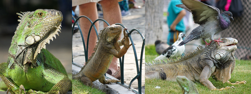 15. Juni 2016: «Parque Seminario» oder umgangssprachlich «Parque de Las Iguanas» → Der Stadtpark in Guayaquil mit frei herumlaufenden Leguanen.