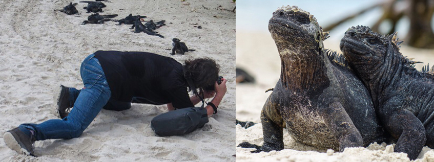 18. Juni 2016: Auf Augenhöhe mit den kleinen Galápagos-Biestern in der Tortuga-Bay.