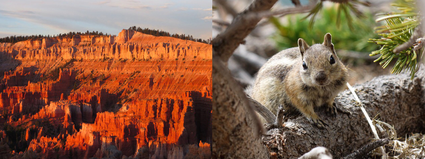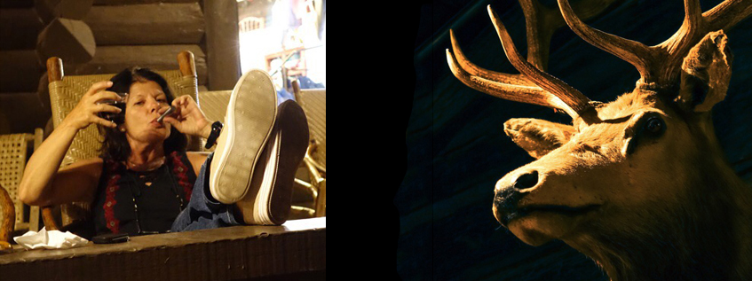 26. Juni 2016: Grand Canyon Tovar-Lodge after Sunset (L). Streichelzoo an der Hotelbar. Und das Viech rennt auch bestimmt nicht weg (R).