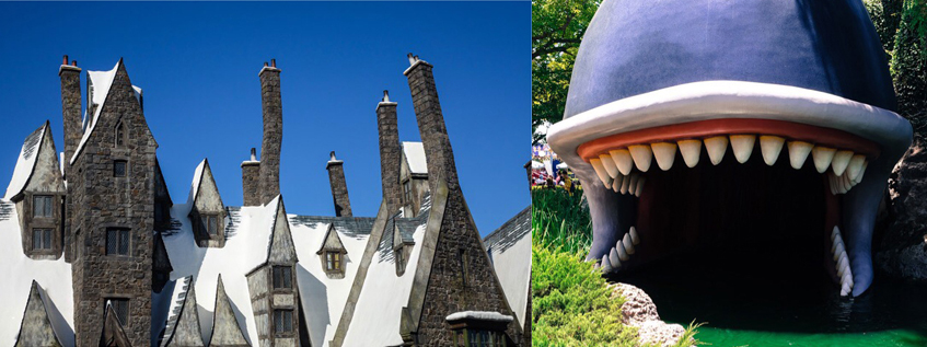 13. Juli 2016: Bei der Wizarding World of Harry Potter im Universal-Studios-Park in Los Angeles ist der Schnee nicht echt und Harry Potter wurde auch gar nicht in den Universal Studios gedreht, sondern bei der Konkurrenz, den Warner Bros. There is no Business like Show Business (L). Das gefrässige Disneyland-Resort in Anaheim nahe Los Angeles schluckt täglich rund 44'000 Besucher. An Weihnachten 2014 sollen es gemäss Los Angeles Times sogar 80'000 gewesen sein. Und jeder von denen will den Buzz-Lightyear-Astro-Blaster und die Indiana-Jones-Adventure-Ride rocken. Übrigens das Chip 'n Dale Treehouse ist völlig jugendfrei und man muss da auch nicht anstehen (R).