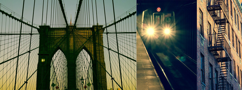 16. Juli 2016: Brooklyn Bridge (L). Die New York City Subway zählt zu den ältesten U-Bahnen der Welt (M). West Side Story (R).