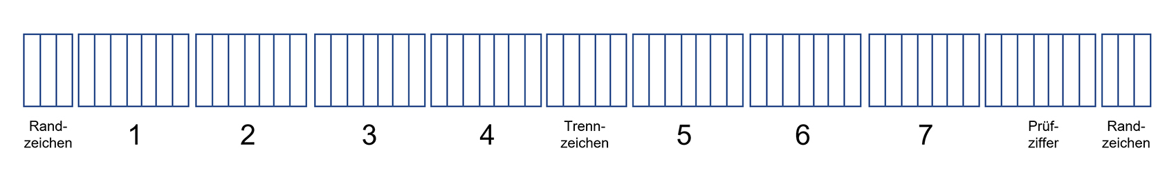 Beim EAN-Barcode besteht jedes Zeichen aus 7 gleich grossen Spalten. Je nach Codierung werden diese Spalten gefüllt oder leer gelassen,