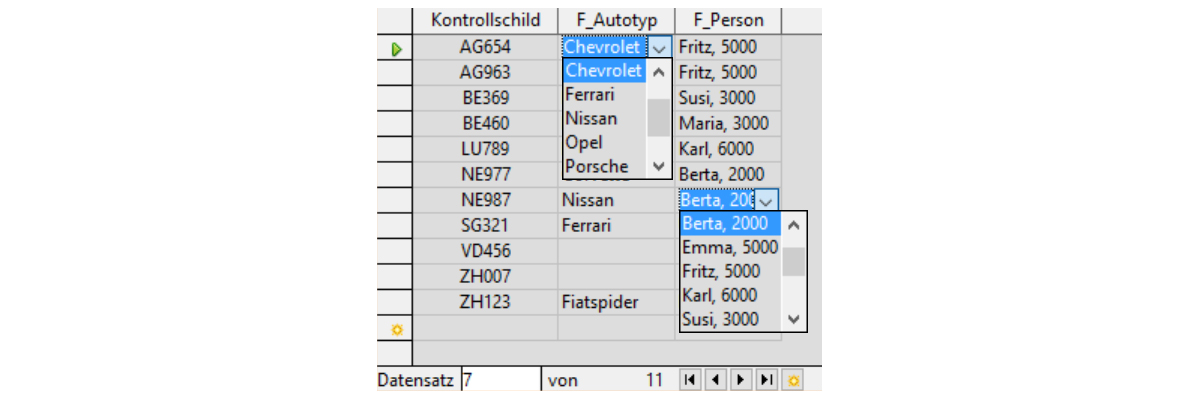 - Ein Tabellen-Kontrollfeld kann mehrere Spalten mit z.B. Listenfelder enthalten.