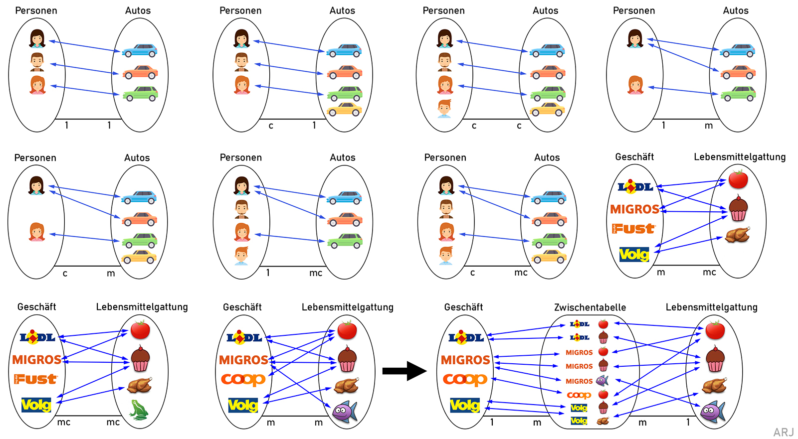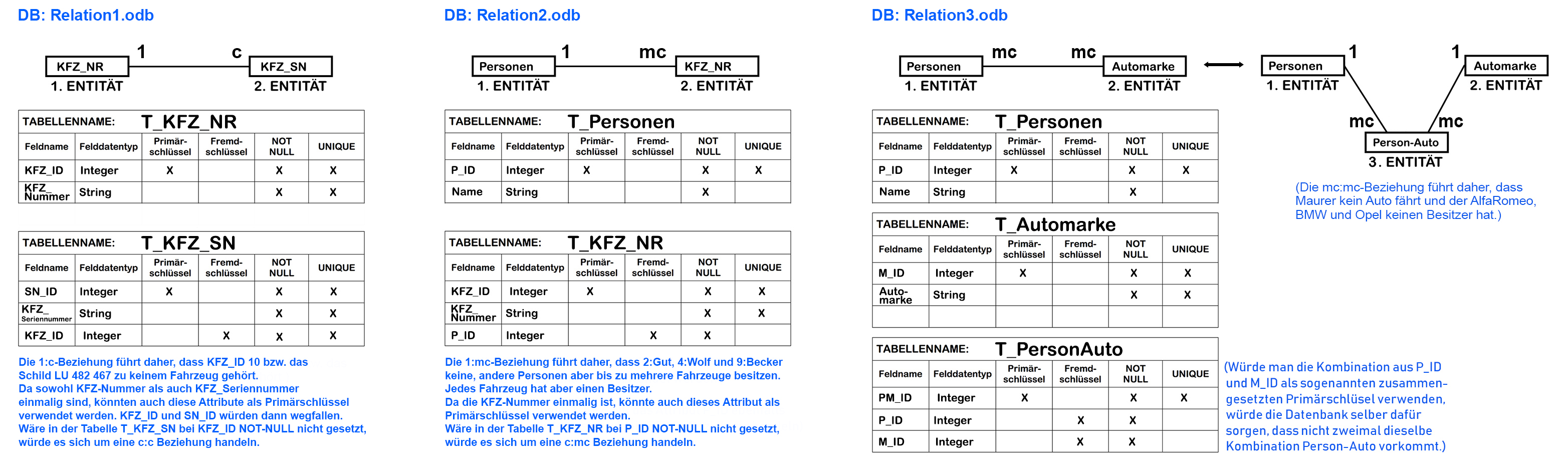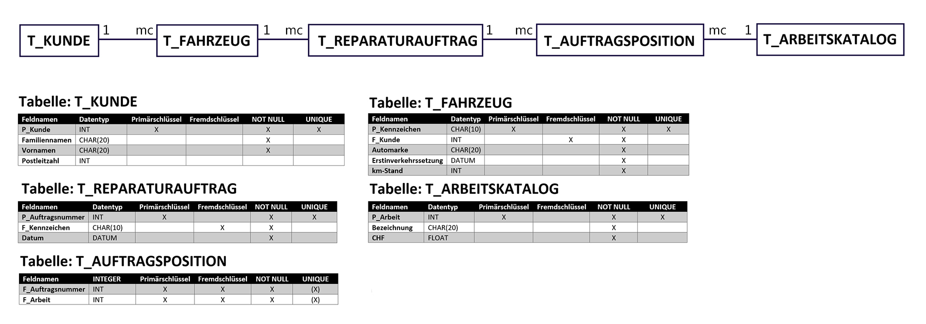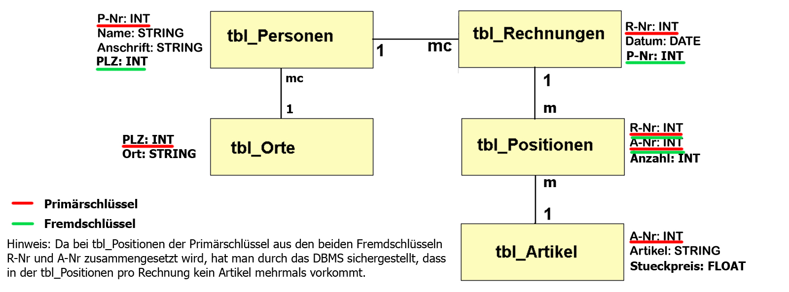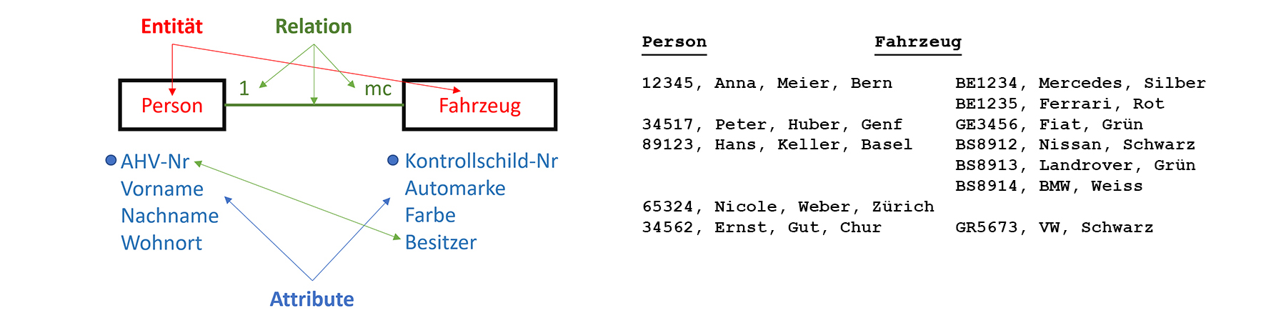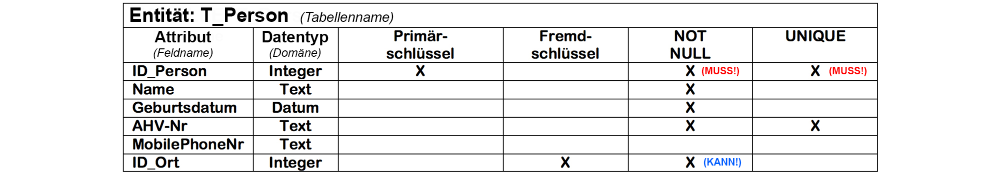 - Entität (Tabellenname, Entitätstyp, Relationen zwischen Entitäten)