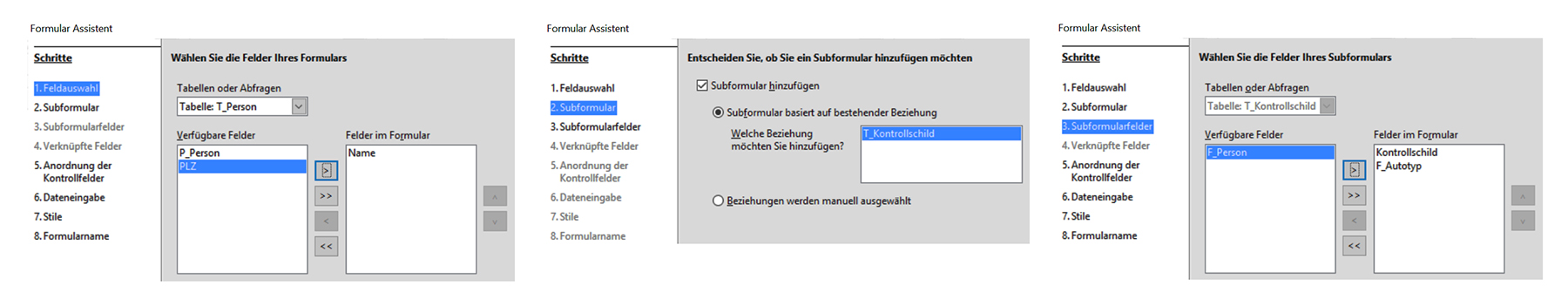 Das Vorgehen: Der erste Formularentwurf wird wiederum mit dem Assistenten erstellt. Die Schritte werden in der folgenden Abbildung gezeigt: