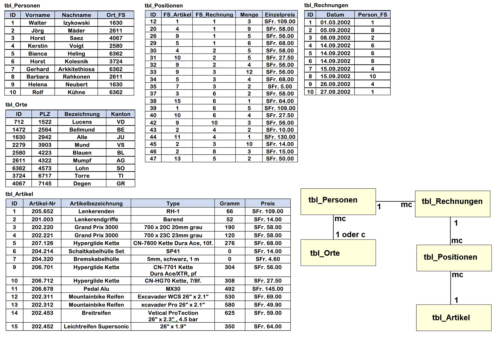 Informationen auf mehrere Tabellen verteilt und über Beziehungen (Relationen) miteinander verbunden.