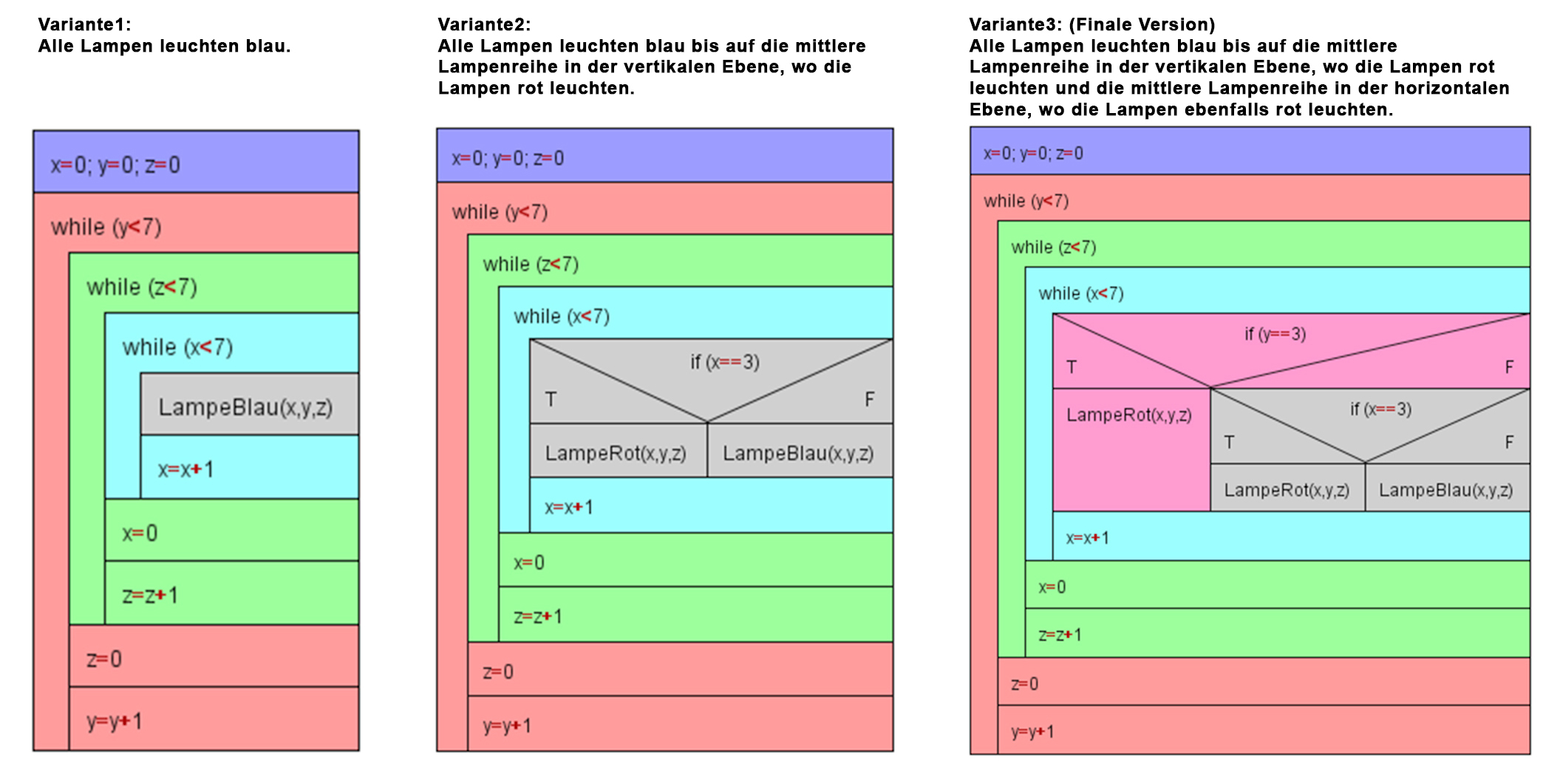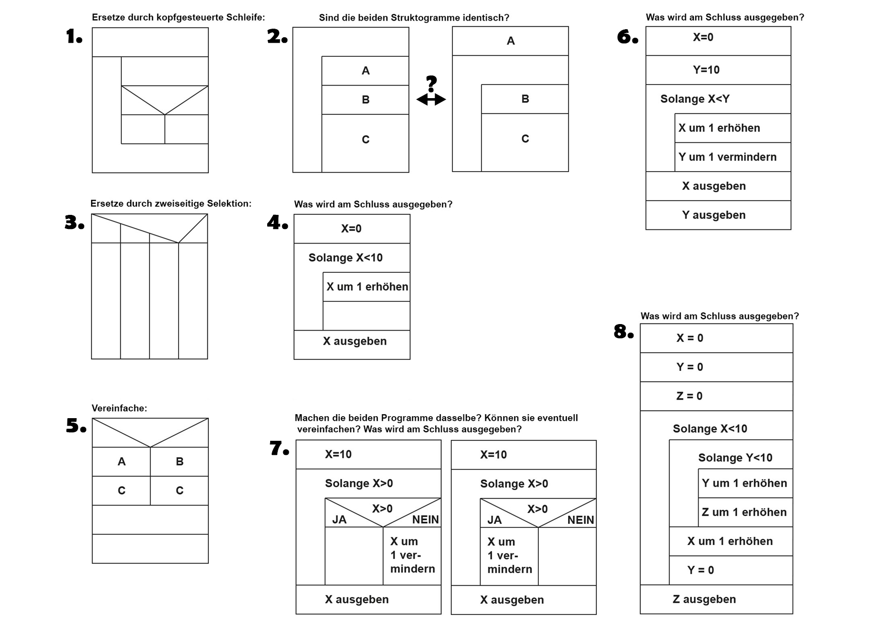 Die Aussparung unter "falls" bzw. "sonst" muss mit Inhalt (d.h Anweisungen, Steuerungen) gefüllt werden - solange: Solange dies zutrifft tu das. (Kopfgesteuerte Schleife)