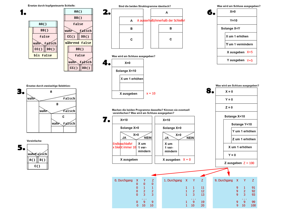 Hinweis: Je nach Bedingung wir die Schleife nicht betreten. - wiederhole-solange: Wiederhole dies solange das zutrifft. (Fussgesteuerte Schleife)