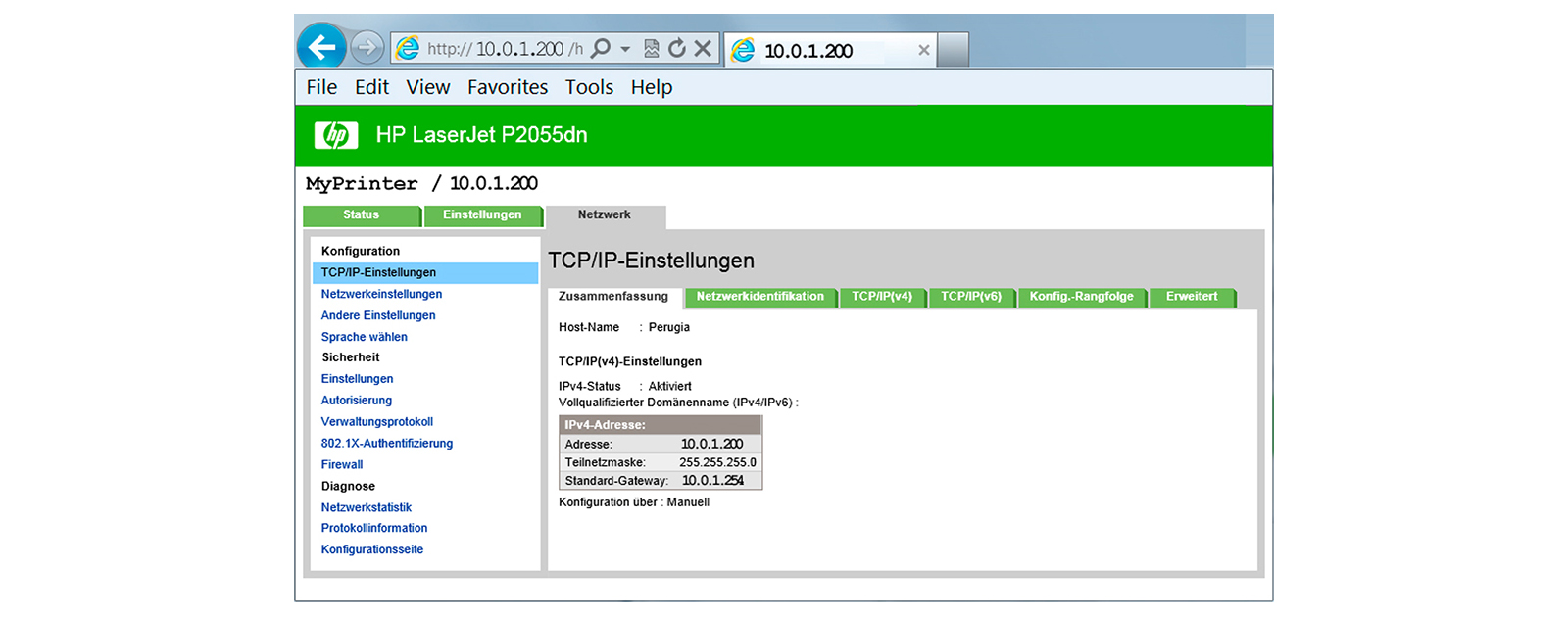 - Installieren und Konfigurieren sie diesen Drucker auf ihrem virtuellen Server gemäss den folgenden Vorgaben.