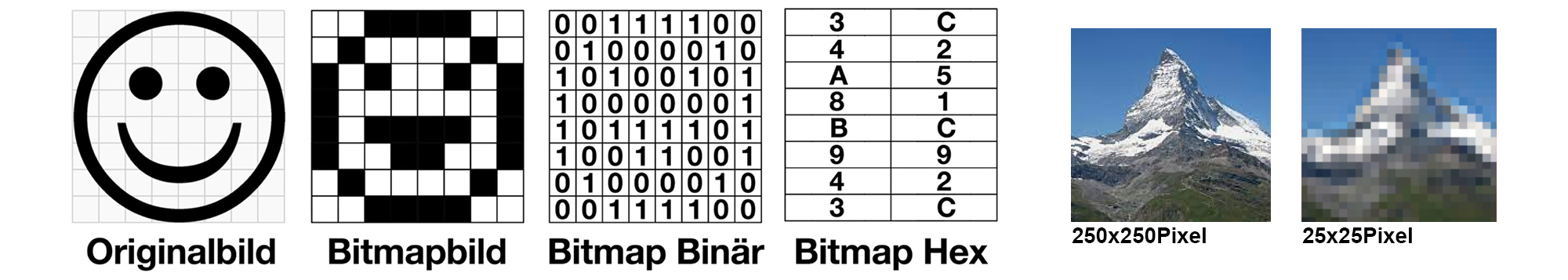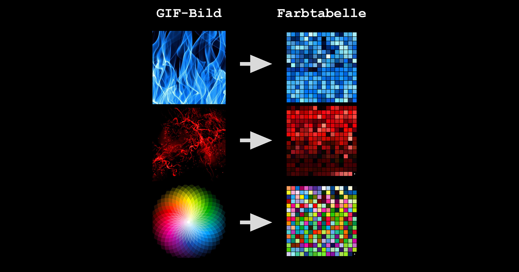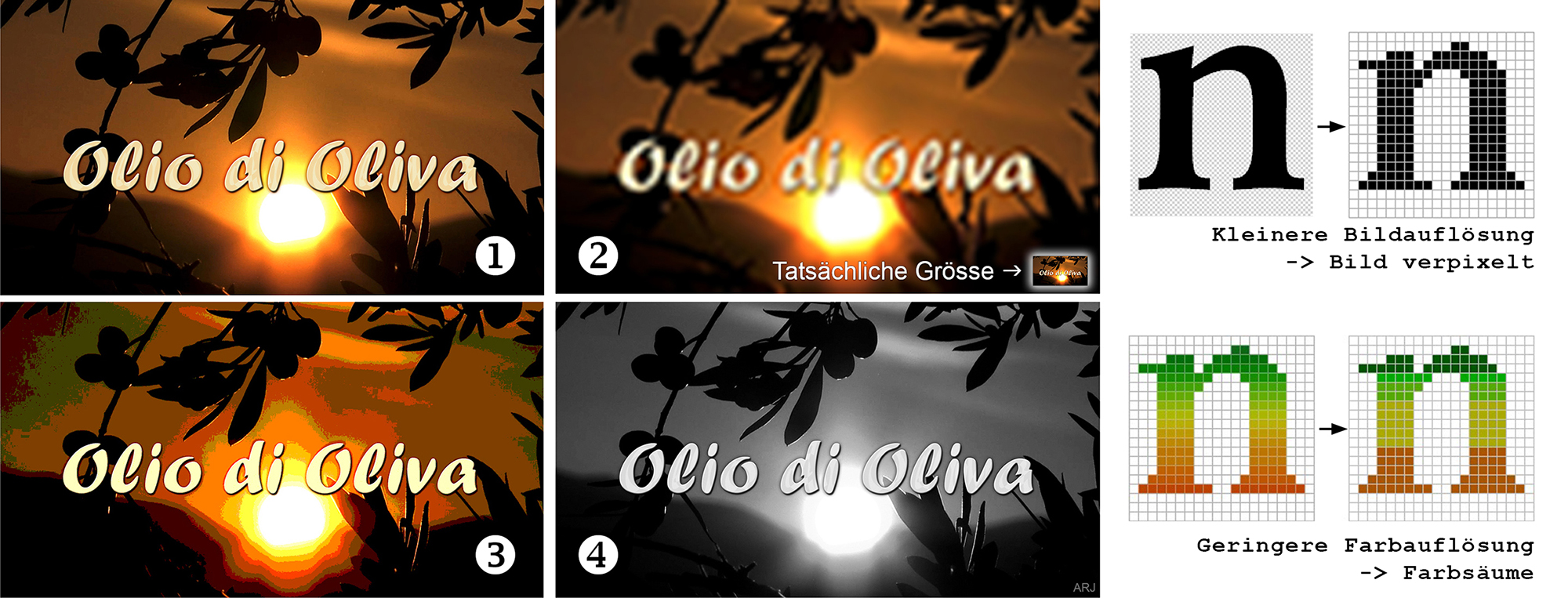 Die einfachsten Komprimierungsverfahren sind die Reduktion der Bildgrösse oder der Farbigkeit: