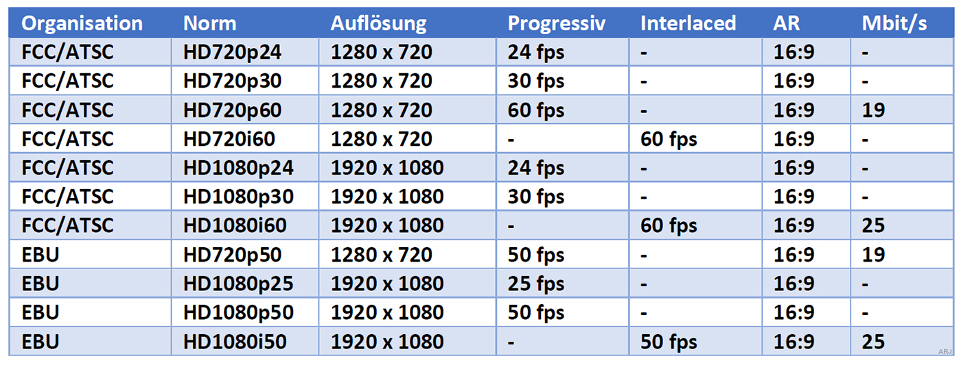 4.2 Aktuelle Fernsehnormen in High-Definition
