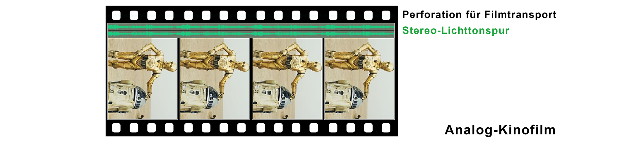aufgebracht sind. Der Ton wird auf einem Streifen (Tonspur) fotografisch gespeichert. Da die Bilder schrittweise weiterbefördert werden