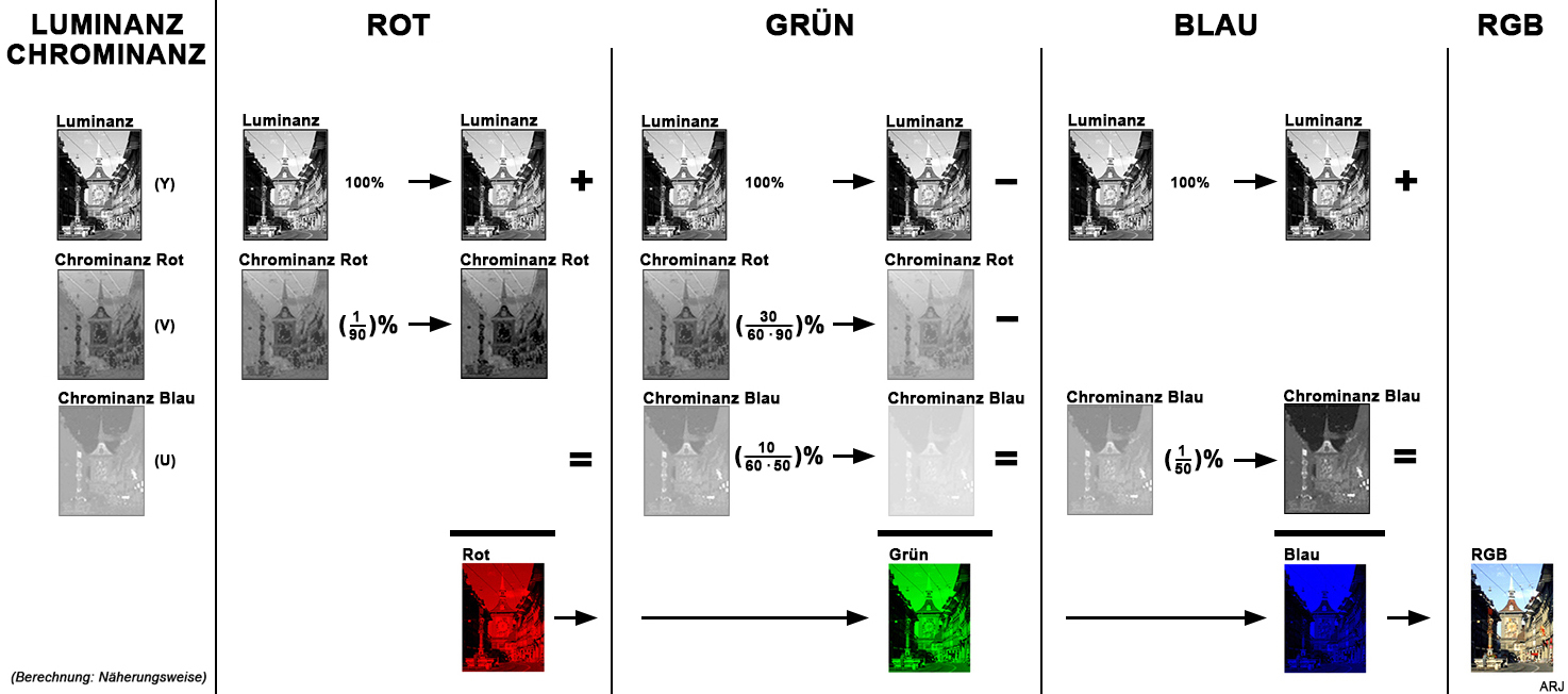 Luminanz (Y) = 0.3 x Rot + 0.6 x Grün + 0.1 x Blau