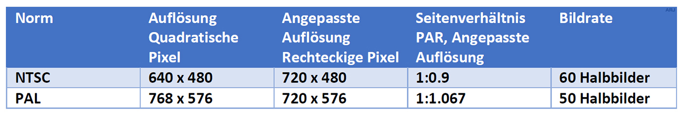 und zur Vorführung wieder dekomprimieren (entzerren). Bei Digital-Video Standard-Definition (SD) PAL und NTSC kommt dieses Verfahren